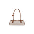 Long tubular handles with decorative ties, double zip closure, small removable mirror on the inside pocket