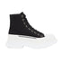Black canvas lace-up boot with a lightweight oversized rubber tread sole. The boot is detailed with a textured rubber wrap and tonal Alexander McQueen signature, finished with a signature ribbon on the back of boot. Round toe shape boot silhoutte details rubber toe cap.
