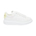 White smooth calf leather sneaker with a 3D printed transparent studs embellishment on the heel counter. The sneaker features large flat laces and an oversized rubber sole. Finished with an Alexander McQueen signature on the heel counter and tongue. The sneaker comes with an additional set of shoelaces.