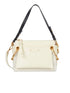 Roy is an elegant everyday bag featuring a gusset construction secured by piercing oversized rings in Chloé's signature "O" shape. True to the Maison's play on masculine and feminine notes, sharp lines and a strong structure are softened by refined details, such as the Chloé embossed logo and golden studs.