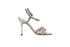 Maria Grazia Chiuri introduces the sophisticated and refined Dior Gem heeled sandal. Crafted in silver-tone cotton embroidered with metallic thread, it is further embellished with multicolor square strass and is distinguished by a play on delicate straps. Completed by a 10 cm (4") heel, the exceptional shoe pairs well with formal attire.