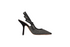 The J'Adior slingback pump is a prime example of Dior's savoir-faire. Crafted in Christian Dior's Italian ateliers, the pointed-toe silhouette is offered in black cotton embroidery adorned with silver-tone strass. The strass 'J'ADIOR' ribbon is embellished with a flat bow, and a 10 cm (4") comma heel offers the final elegant touch for an evening look.