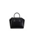 Mini Antigona bag in smooth black box leather. Trapezoid shape with triangular GIVENCHY patch, oversized zip and metal details. Adjustable and removable shoulder strap. Two flat pockets and one zippered pocket inside.
