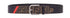 Belt with single loop. Pin buckle with metal eyelets. Made of glazed fabric with FF motif. Black leather insert and detail in red leather. Palladium-finish metalware.