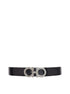 Grounded in classic style and sophisticated taste, this belt presents the signature metal Gancini buckle in a shiny palladio finish with a layer of black resin discretely sandwiched in the middle. Crafted from calfskin leather with a natural grain, it’s the perfect accessory for the modern gentleman. The adjustable length makes it easy to customize the fit.