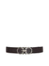 This belt conveys urban elegance – courtesy of the signature Gancini buckle with a modern, hammered finish that references the leather in its exploration of textures. The reversible design is crafted from supple calfskin leather and features a smooth finish on one side and a signature stamped effect on the other. The adjustable length makes it easy to find your perfect fit.