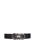 At once elegant and eye-catching, this belt in natural grained calfskin leather is approximately 4 cm wide. The two toned Gancini buckle is detailed in shiny gunmetal surrounded by palladio finishes that lends it a sleek, contemporary touch. The reversible and adjustable design ensures a personalized fit and finish.
