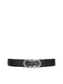A sleek double Gancio frames a mini SF signature on this contemporary belt for a refined look. The reversible length is made of smooth calf leather, matte on one side and buffed to a slight shine on the other to emphasize its natural texture. Adjustable length for a custom fit.
