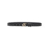 • Reversible belt with loop and diagonal FF stud buckle embellished with crystals. One side is black leather and the other black leather with a tone on tone embossed FF pattern. Gold-finish metalware.