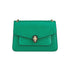 - With its captivating body in vivid emerald green shiny ostrich skin, masterfully hand-crafted by Bvlgari's artisans enhancing its natural pattern and glossy look, the Serpenti Forever medium shoulder bag blends urban attitude and dynamic spirit with precious materials. Featuring a snake body-shaped chain, this everyday creation is topped by the iconic snakehead closure whose mesmerising scales and design draw from the Serpenti jewels of the '60s. The model is complete with two compartments, a front open pocket, a back patch pocket, an open and a zipped internal pocket, a customisable mirror and the Bvlgari metal logo on the back. 25 x 16.5 x 8 cm - 9.8 x 6.3 x 3.1 inches. Made in Italy.