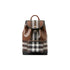 - A backpack made in Italy from Burberry Check trimmed with topstitched calf leather and lined in a cotton blend. The drawcord style features a leather top handle and front zip pocket.