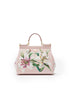 Medium Sicily handbag in printed Dauphine leather that has been re-painted by hand. Romantic and feminine, it is perfect for wearing with any look. The print is first carefully placed on the individual panels to guarantee that the design is perfectly symmetrical and then re-painted by hand by master craftsmen, thus creating a sophisticated 3D effect: