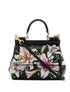Colourful flowers have become an intrinsic part of Dolce & Gabbana's exuberantly feminine collections; gracefully decorating clothing and accessories, each bloom is beautifully brought to life. Carry your essential belongings in style with this black calf leather small Sicily tote bag from Dolce & Gabbana Featuring a round top handle, a detachable and adjustable shoulder strap, a foldover top with magnetic closure, a floral print and a rear logo plaque.
