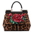 Small handbag from the Sicily line in leopard print pony embellished by a sequined embroidery patch and rose applications in painted resin: