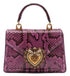 The small top handle bag from the Devotion line is offered in new materials. perfect for special occasions. Made of python, an exotic material, it features the exclusive bejeweled heart closure and the strap inspired by the techniques of fine jewelry: