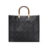 • Medium Sunshine Shopper bag made of black leather with raised 3D-texture FF motif and rigid tortoiseshell-effect plexiglass handles.