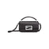 Baguette smartphone pouch with front flap and FF magnetic button closure. Small handle and detachable shoulder strap. Made of black silk satin. Palladium-finish metalware.