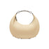 Medium hobo bag made of supple matte beige leather, decorated with vintage-palladium metal FENDI lettering, visible when wearing the bag under the arm.