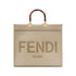 Medium Sunshine Shopper bag made of dove gray leather with hot-stamped FENDI ROMA lettering and stiff tortoiseshell-effect plexiglass handles.
