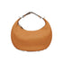 Medium hobo bag made of brown leather, decorated with vintage-palladium metal FENDI lettering, visible when wearing the bag under the arm.
