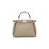 Iconic small Peekaboo bag made of dove gray Cuoio Romano leather, finished with hand stitching and embellished with the classic twist lock on both sides.