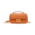 Iconic medium Baguette bag with chain made of brown soft nappa leather with a three-dimensional texture FF motif. Decorated with an FF clasp.