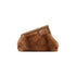 Small Fendi First bag made of brown mink with oversized metal F clasp bound in tone on tone nappa leather.
