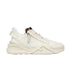 Fendi Flow sneakers with adjustable elastic laces and side zipper closure. Branded with FF pattern on the tongue and rubber tab with embossed logo on the back of the heel. Made of white leather. Fabric details with white and pale gray FF motif. 35 mm rubber running sole with tone on tone diagonal F detail.