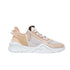 Presented during the Fendi Men’s Autumn Winter 2020 Fashion Show, Fendi Flow sneakers feature a close-fitting, supported design that adapts perfectly to both the male and the female wardrobe. The upper has adjustable, elastic laces and a side zipper for taking them on and off comfortably and quickly. The FF motif on the edge of the tongue and the rubber tab on the heel with raised Fendi lettering are iconic, distinctive details. They are completed by the 35 mm rubber running sole decorated with a diagonal, engraved F. This style is made of nylon and suede in shades of pink and white and is designed for the Women’s collection.