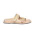Double-band flat slides with FF Baguette decorative buckles. Made of nude beige leather. Edges embellished with engravings. Gold-finish metalware.