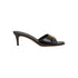 • Slip-on sandals with square toes and two wrap-around bands. The Metal FF detail, with a special design that includes a functional hinge in the centre, makes them comfortable to walk in. Made of black leather. Gold-finish metalware.