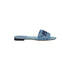 - Wide-band slides. Made of a worn-look blue denim with an FF quilted motif. Blue thread Fendi Roma embroidery. 10 mm heel.