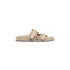 - Double-band flat slides with FF Baguette decorative buckles. Made of chenille with dove gray and beige jacquard FF motif. Edges trimmed with beige suede. Gold-finish metalware.