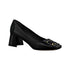 • The Shake pump is a striking, modern style in high-shine patent calf leather. The upper features a distinctive leather tongue, which is embellished with an LV accessory referencing the clasp of the Twist bag. This design, which is finished with a leather outsole, is also notable for the graphic V-shape of its low block heel.