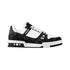 • For the first time, the cult LV Trainer sneaker, a staple of the men's collection, is revisited for women in calf leather and Monogram denim. This classic design, created by Virgil Abloh, references vintage basketball sneakers. It features numerous signature details, including the LV Initials on the tongue and side, and Monogram Flowers on the outsole.