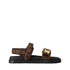 The LV Sunset flat comfort sandal is revisited this season in Louis Vuitton's signature Monogram canvas. A luxurious interpretation of the comfort trend, this model is notable for its anatomic insole and padded straps with practical velcro fastenings. The front strap is embellished with a gold-tone LV accessory, which references the iconic Twist bag.