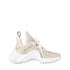 • This summery edition of the LV Archlight sneaker combines Monogram canvas with smooth calf-leather trim. This iconic sneaker, designed by Louis Vuitton Women's Artistic Director Nicolas Ghesquière, is recognizable for its exaggerated tongue, feminine low cut around the ankle, and wave-shaped outsole. Both the tongue and outsole bear the LV Circle signature.