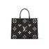 - The OnTheGo MM is a medium-sized tote bag with two sets of handles, long and short, for hand and shoulder carry. Fashioned from supple grained cowhide leather, it features a Medium Monogram pattern, printed on and embossed into the leather. The spacious interior, which can hold a laptop and other work essentials, make it a versatile everyday bag.