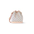 - The Noé BB bucket bag harks back to a design from 1932. A Champagne producer asked Gaston-Louis Vuitton to develop a sturdy, stylish bag in which he could transport five bottles of bubbly. This charming version in body-friendly Damier Azur canvas retains key features of the original – the iconic shape and drawstring closure – but is made for modern life. The leather strap adjusts for comfortable shoulder or cross-body wear.