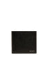 A classic men's wallet shape, the Bollen in black embossed leather is a bi-fold style with contrast color detailing, card slots and a flat note pocket.