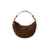 Brown suede enamel triangle logo gold-tone hardware adjustable shoulder strap curve-edge body internal patch pocket internal logo stamp main compartment top zip . Material:Calf Suede/Nylon/Nappa Leather.