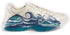 The old school chunky soled design of the Rhyton sneaker is presented in ivory leather for Pre-Fall 2019, printed with a graphic wave print that outlines the side of the shoe.