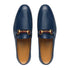 Crafted from soft blue leather, the loafer's refined shape is enriched with a combination of two of the House's most distinct codes: the Web stripe and Horsebit. Since the introduction of its classic shape in the 1950s, the preppy-inspired shoe has continued its influence, redesigned in new forms and materials. The foldable back heel gives the classic design a contemporary appeal.