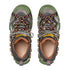 Sparkling crystals are embroidered onto a removable elastic strap, wrapping around the sneakers and resulting in a kaleidoscope effect. Inspired by the hiking world, this shoe line combines an oversize design with dream-like details. Featuring a dynamic mix of materials – rubber, suede, leather and technical canvas – the accessory is defined by the Gucci patch with the graphic font of SEGA, a fixture in the colorful arcades and coin-op game rooms of the '80s.