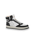 The Rivoli sneaker boot comes in white grained calf leather with contrasting colored trim. The supple leather is laser-printed with Louis Vuitton's iconic Monogram pattern. This hi-top features a padded tongue, embossed in gold with the LV Initials, and a velcro strap which can be worn at the front or back.