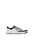 These sporty leather sneakers are accented with different interpretations of the Prada logo that appears on the tongue, along the light rubber sole, and as a rubber triangle decorating the side of the upper.