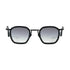 A unisex graphic shape with rims carved out of a 4mm engraved metal strip. The frame is enlivened by our new geometric bridge and features traditional end pieces. Shiny black acetate & alloy frame treated with a carbon black layer. Grey gradient