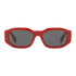 - Refreshed in a zesty tone tone, these classic sunglasses evoke the opulent style of a hip-hop icon with a bold low-lens shape and wide temples embellished by a gold-tone heritage Medusa medallion. Featuring a bold combination of a red frame and grey lenses.Frame color: Red