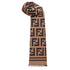 Rectangular beige wool and silk knitted scarf with all-over FF motif. Trimmed with a striped border in matching tones.