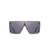 Oversized titanium frame, wide gold-tone and amber temples, silver-tone Balmain logo on front, Wonder Boy lettering on interior of temples, gold-tone anti-glare lenses, 100% UV protection
